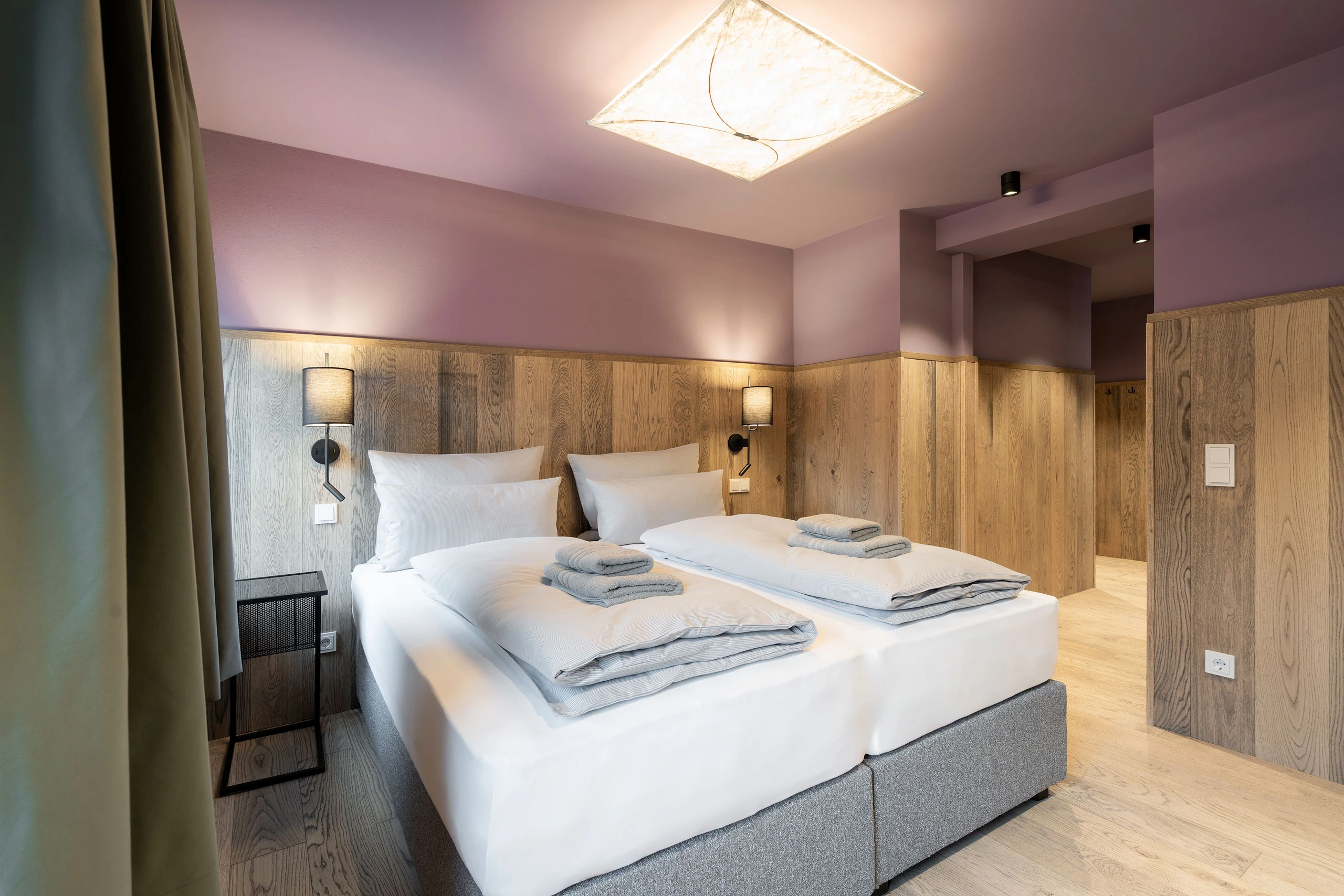 Offen, freundlich und wohltuend großzügig. Drei Schlafplätze, darunter ein abgetrennter Bereich mit Einzelbett, ein Schreibtisch für ruhige Stunden, viel Luft zum Atmen. Auch ein Hund darf hier mit ankommen. Ein Zimmer für alle, die gerne zusammen reisen und trotzdem Raum für sich schätzen.