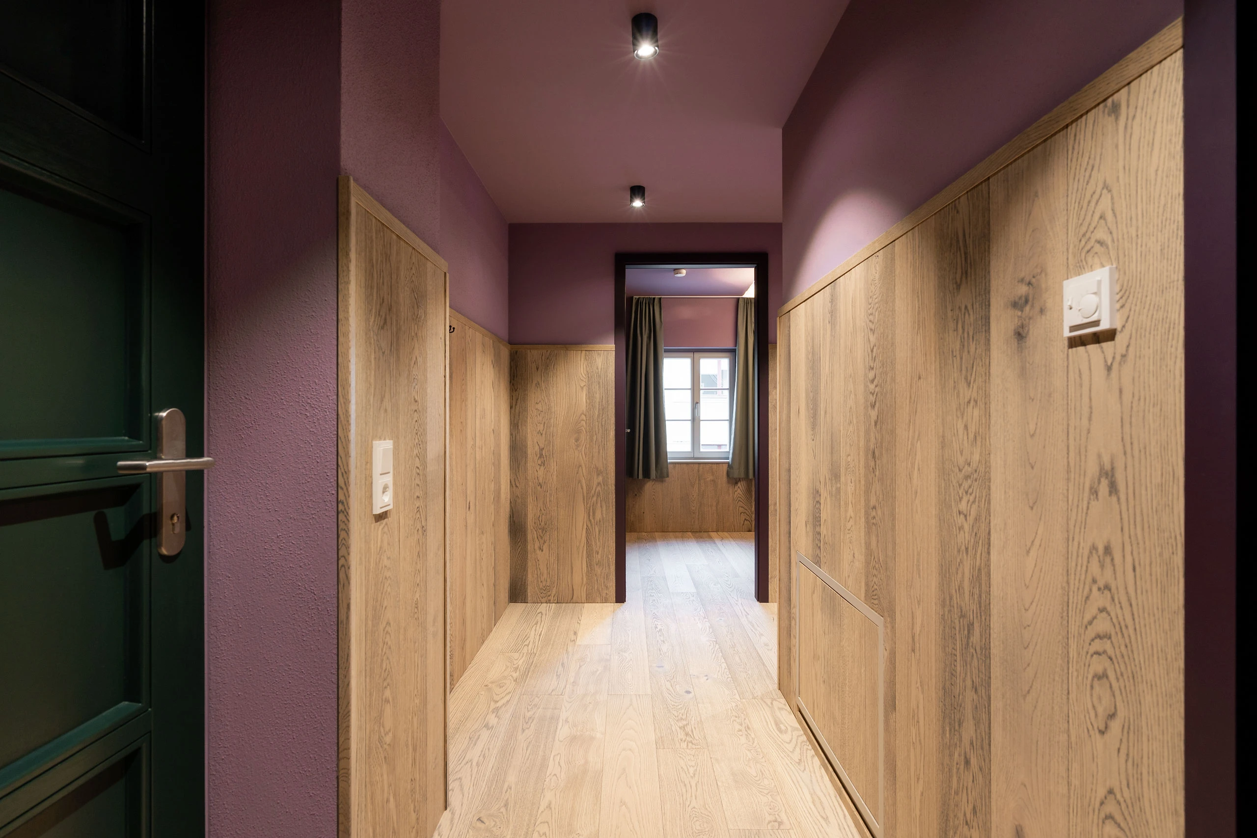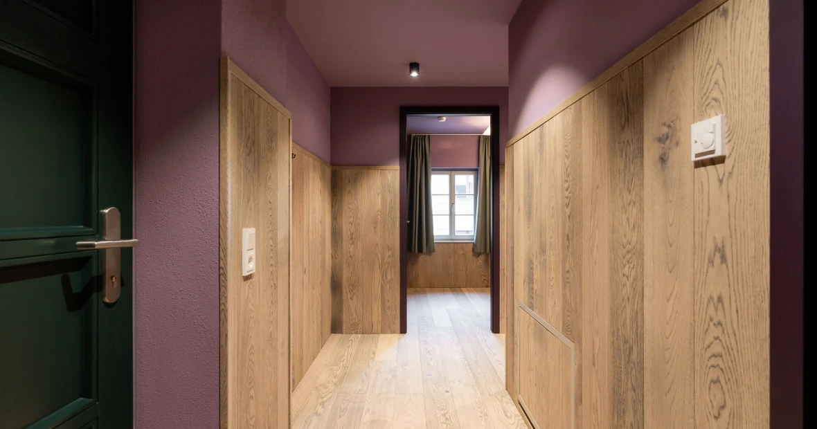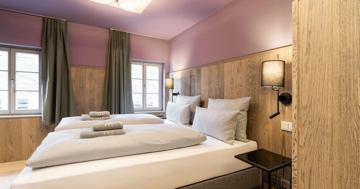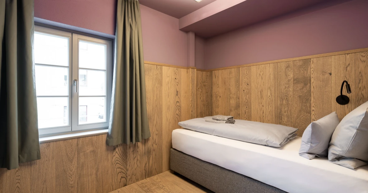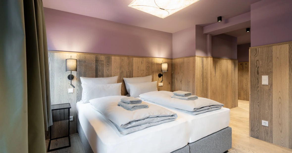 Offen, freundlich und wohltuend großzügig. Drei Schlafplätze, darunter ein abgetrennter Bereich mit Einzelbett, ein Schreibtisch für ruhige Stunden, viel Luft zum Atmen. Auch ein Hund darf hier mit ankommen. Ein Zimmer für alle, die gerne zusammen reisen und trotzdem Raum für sich schätzen.